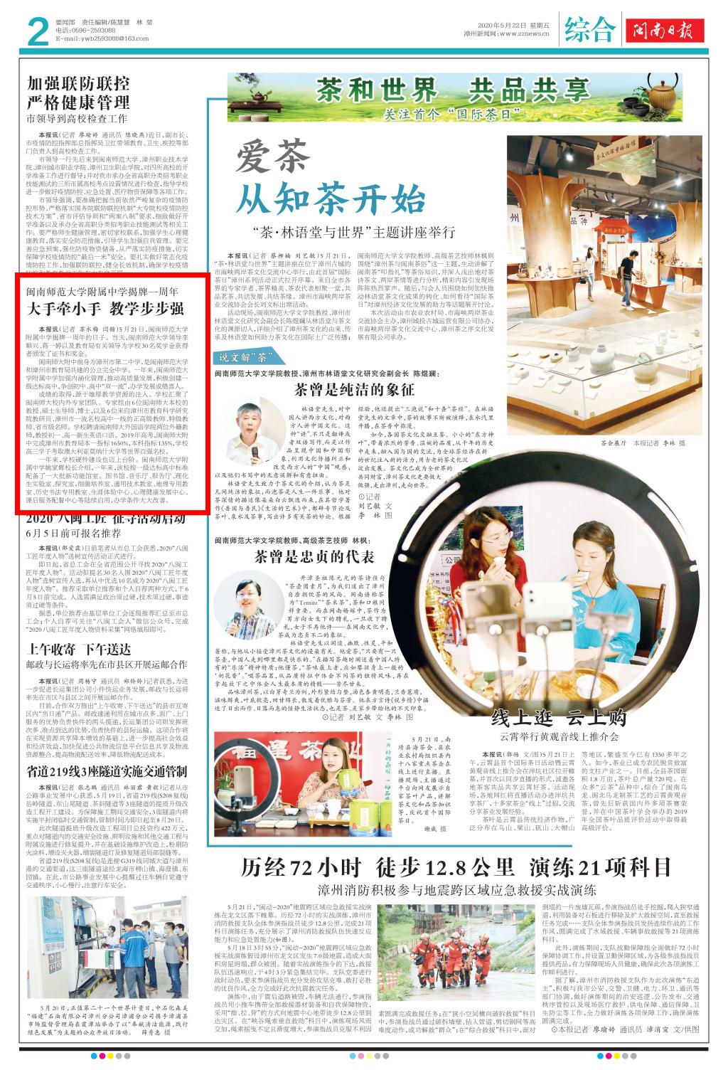 闽南师范大学附属中学揭牌一周年:大手牵小手 教学步步强