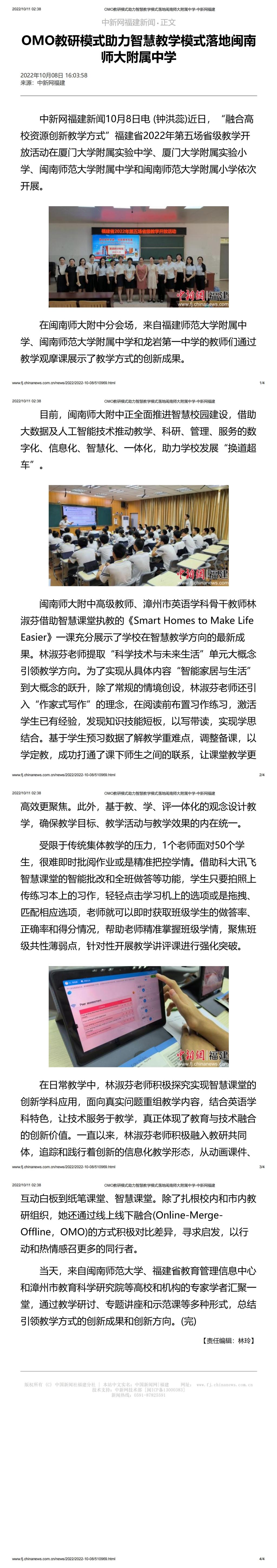 OMO教研模式助力智慧教学模式落地闽南师大附属中学