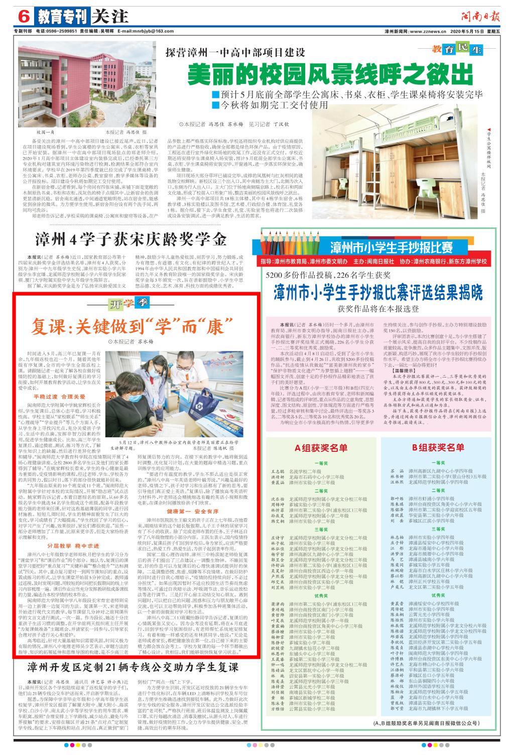 《闽南日报》2020年05月15日报道:复学:关键做到“学”而“康”