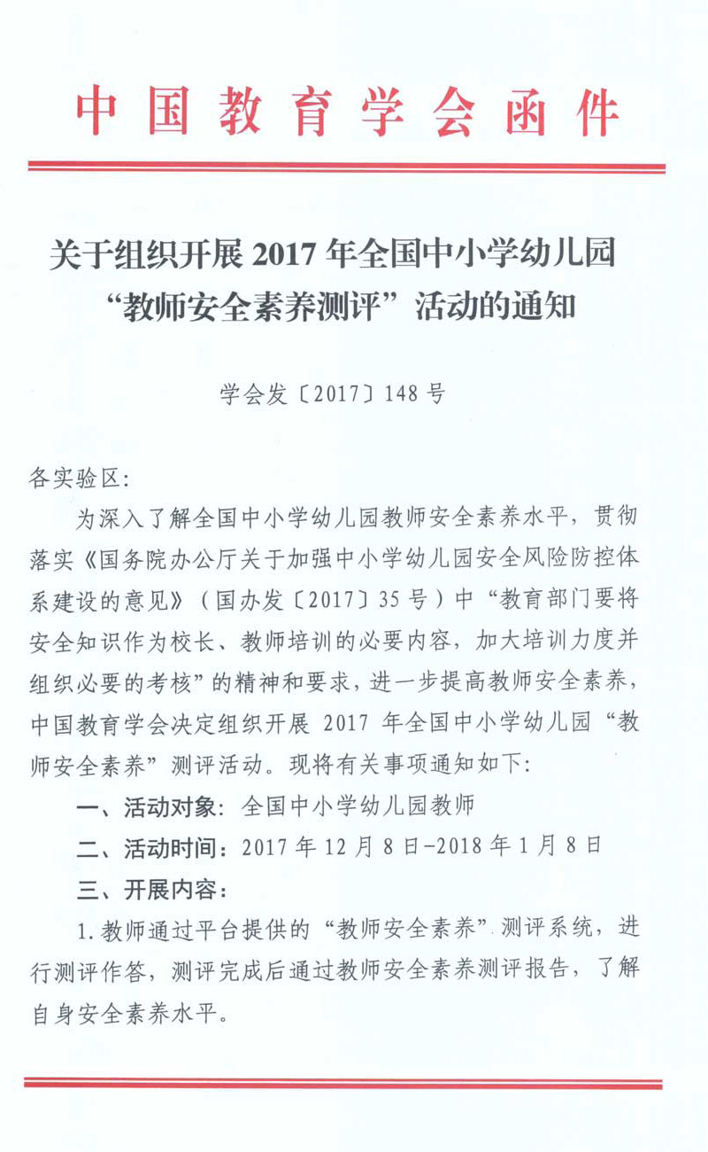 关于组织开展2017年全国教师安全素养发展水平测评的通知