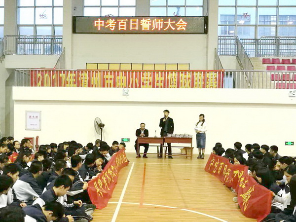 日前,漳州二中召开中考誓师大会。九年级全体师生在学校体育馆庄严宣誓,大会由九年级段长柯雪燕老师主持。