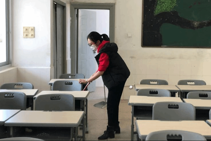 演练结束后,初三年段长、班主任和全体科任老师对教室、走廊进行全面细致的卫生大扫除、消毒消杀,确保卫生无死角;安排单人单桌,调整桌椅距离;领取防疫物资,布置班级测温点等。