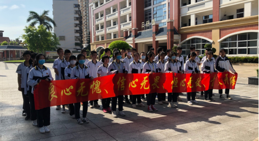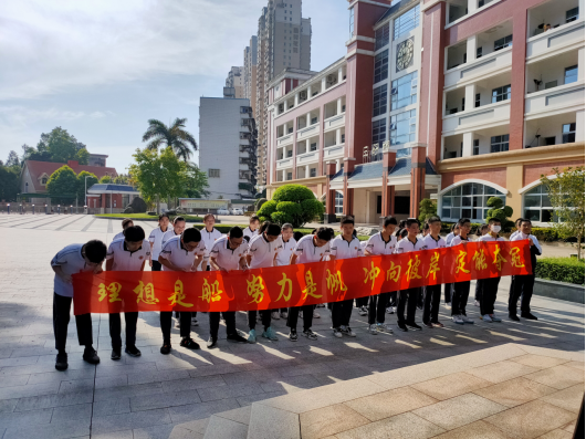 紧接着,初三学子怀揣饱满的激情和昂扬的斗志,高举右拳,在钟段长的带领下响亮喊出中考冲刺誓言。