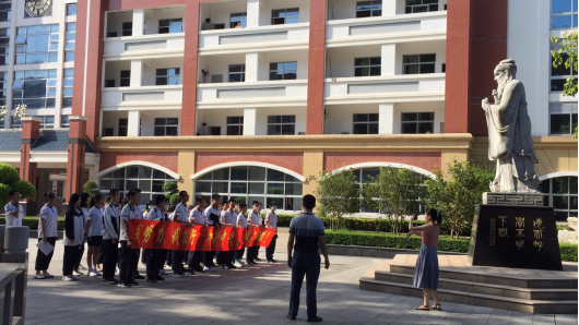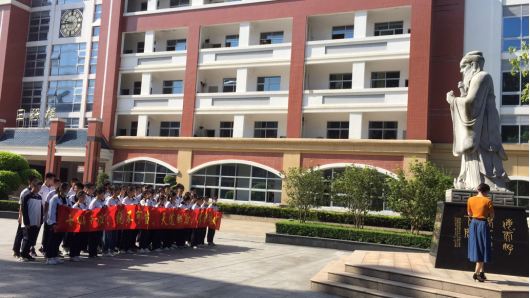 活动最后,同学们在孔像前喊响班级口号,向孔像鞠躬行礼,与孔像合影留念,寄托了金榜题名的美好愿望!