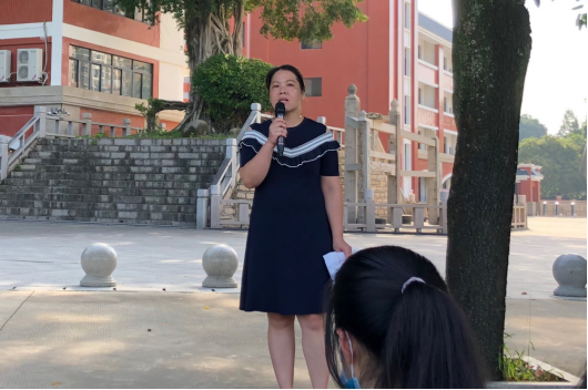 随后,段长郑小玲上台发言,她言辞恳切、语重心长,希望同学们能学有所获,能骄傲自信地说出“我的青春时代,我努力过,我不后悔”,用优秀的中考成绩为自己初中三年的青春作一个总结。
