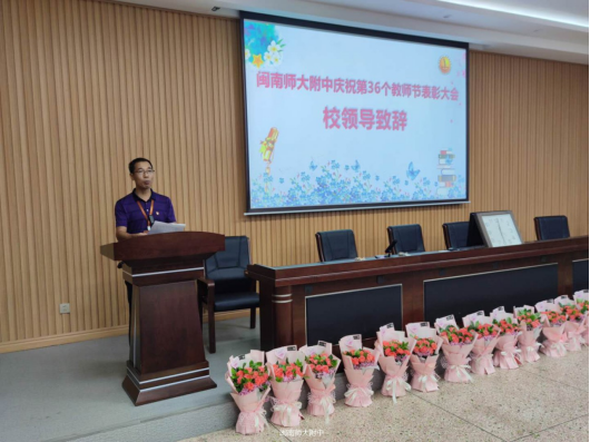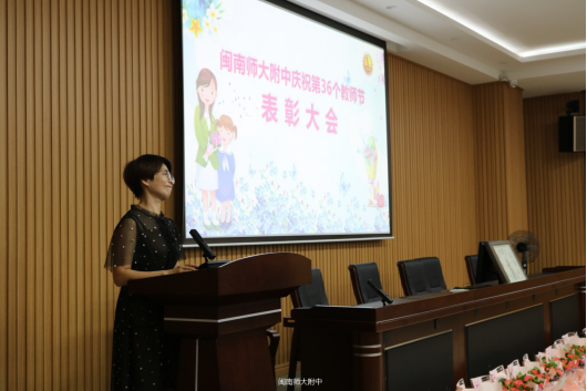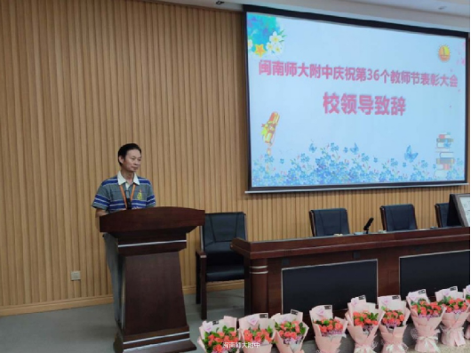 9月10日下午,闽南师范大学附属中学隆重举行庆祝第36个教师节表彰大会,全校教职工、家长委员会代表出席大会。大会由办公室副主任詹建宏老师主持。