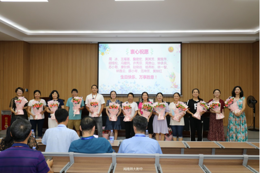 10日下午还举行集体生日会,吴立新、冯碧凤、戴舟斌、庄秋华等四位科室主任为9月份过生日的19位“寿星”送上鲜花。全体教职工欢唱生日歌,向“寿星”们致以美好的祝福!