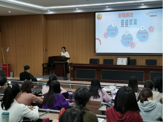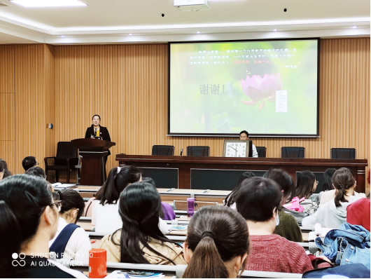 张芬芳老师以《亦师亦友,和谐互促》为题的讲座,从“匠心传、细心帮、示范带”三个方面分享老带新经验。指导新教师静心教书,把握好教学艺术,争取在课堂教学上做到有“三声”——笑声、赞美声、惊讶声。老教师要“为教师终身发展负责,为教师终身幸福负责”,定好目标,全心全意为新教师的发展努力。