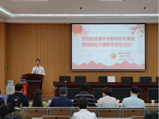 10月26日上午,漳州市教育科学研究院领导、专家一行在陈鹏飞副院长的带领下,深入我校开展教学视导工作。在听取了简短的汇报之后,各学科教研员立刻赴高中相关年段、班级与老师、学生进行面对面的交流,并立足课堂,开展一系列教研活动。