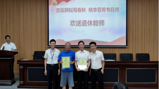 会上,全校教职工为今年以来退休的林旭、黄龙英、余荣宗、曾左民、陈志宏5位教师举行温馨难忘的退休教师欢送仪式。