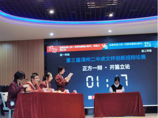 有了前期的充分准备,舌战群儒、一决高下已成为辩手们的期待。双方辩友围绕“如果未来人的一切劳动被ai取代,将是人类之幸/悲”这一辩题,引经据典,据理力争,点燃思辨热情。