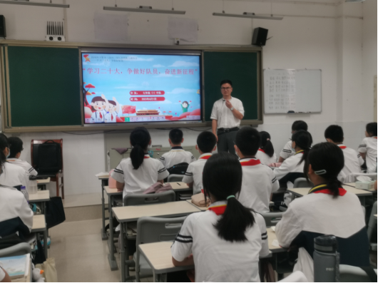 同时,今天也是七年级少先队员们最期盼的日子,是进入新学校后,和新的伙伴们过的第一个“六·一”儿童节。学校利用下午第四节课时间,为七年级的队员们举办了“学习二十大 争做好队员”主题活动。