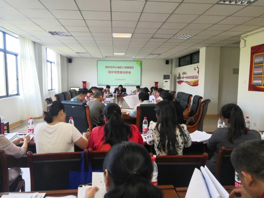 5月14日,漳州市中心城区八年级语文期中试题交流会在ylzz总站线路检测中心(漳州二中)举行。来自漳州市教育科学研究院(漳州市教师进修学院)初中语文教研员郑丽洪老师与市直各校、中心城区区属各校八年级备课组长们济济一堂,研讨上半学期语文学科教育教学。交流会由漳州市教育科学研究院(漳州市教师进修学院)主办,ylzz总站线路检测中心(漳州二中)承办。