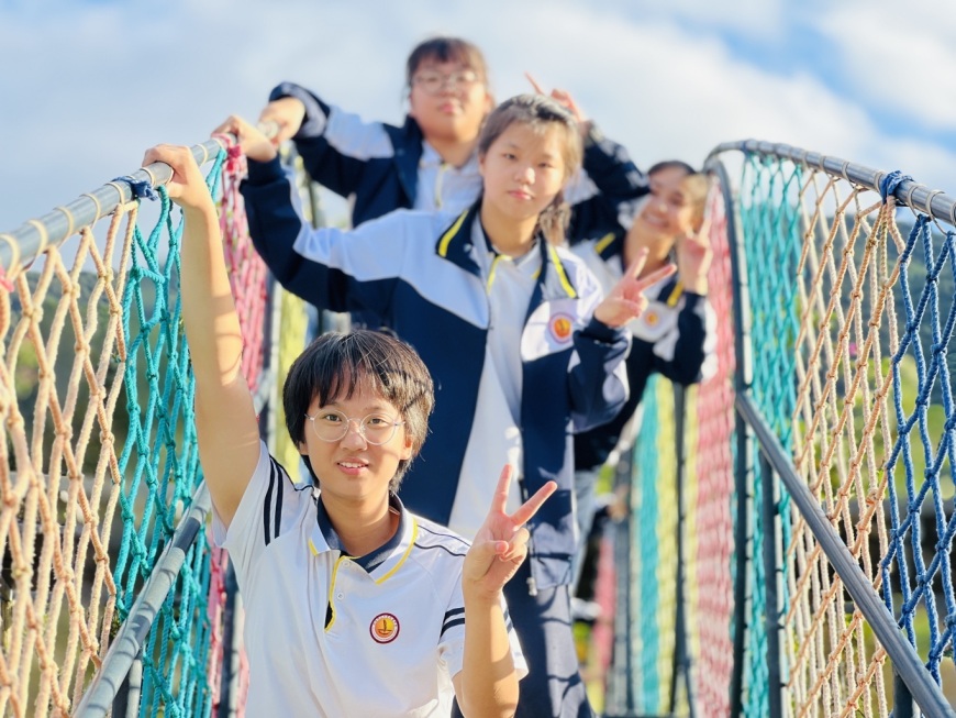 在“飞跃丛林”的挑战中,学子们展现了他们的勇气和决心。他们在挑战中相互鼓励,相互帮助,不仅锻炼了个人意志,也增强了团队精神。