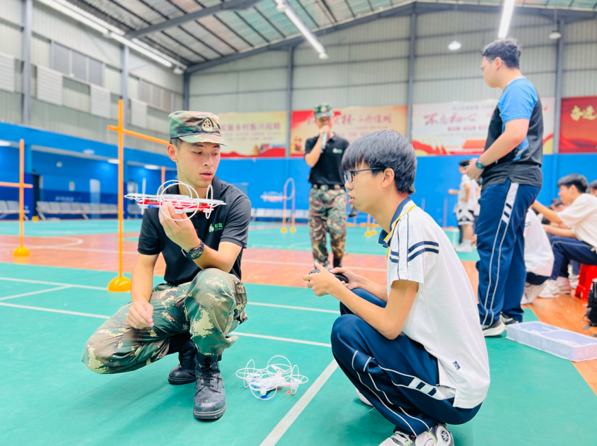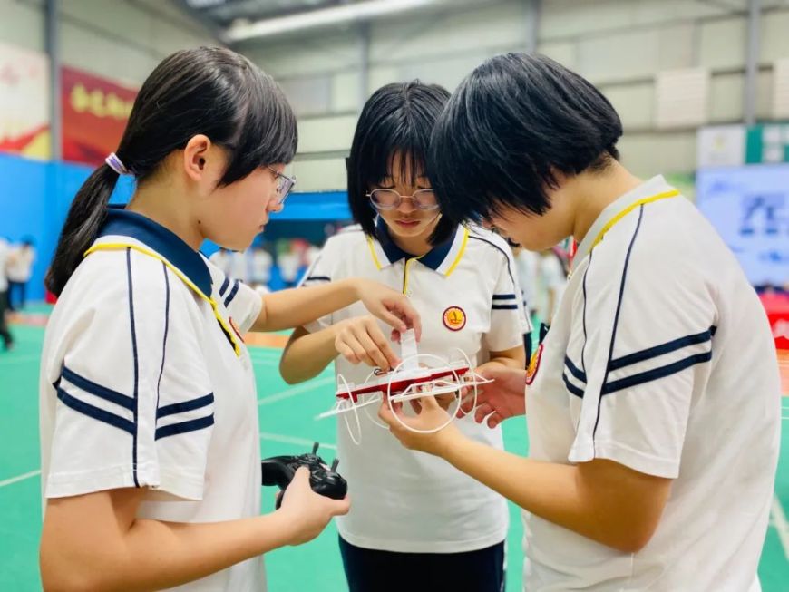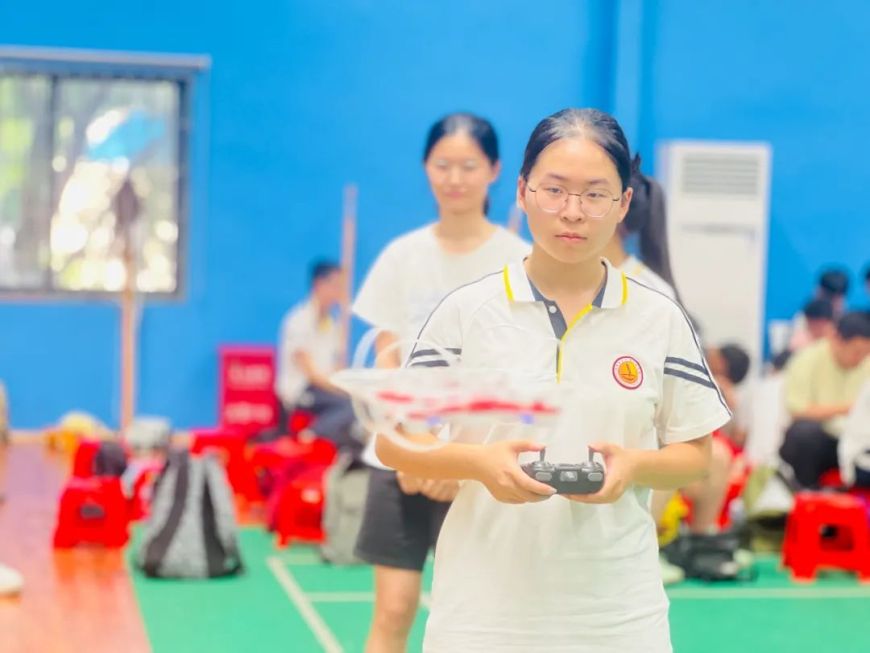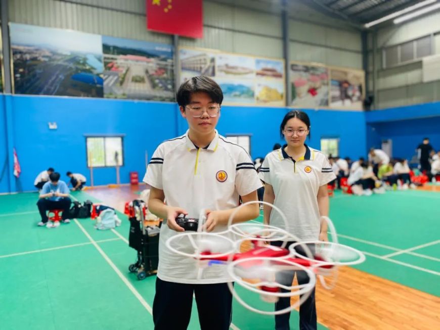 在同学们的操控下,一架架无人机升空高飞,竞速飞行,穿越障碍,能否顺利完成飞行任务,全在于手、眼、心的全力配合。一堂无人机体验课,带领同学们进入无人机时代,感受科技引领美好生活的真谛。