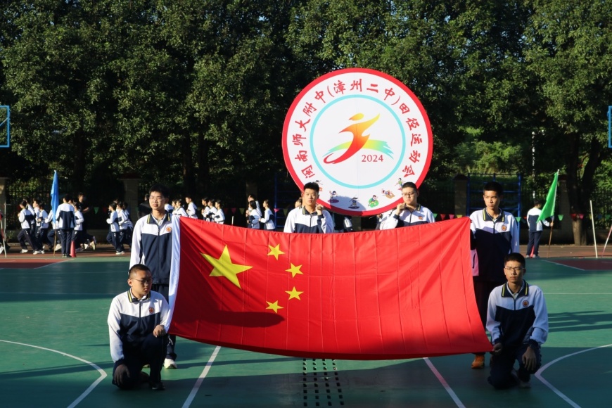 在活力四溢的运动会开幕式上,全体师生满怀热忱,视线紧追徐徐升空的五星红旗,胸中澎湃着对伟大祖国的炽热眷恋与无限尊崇。