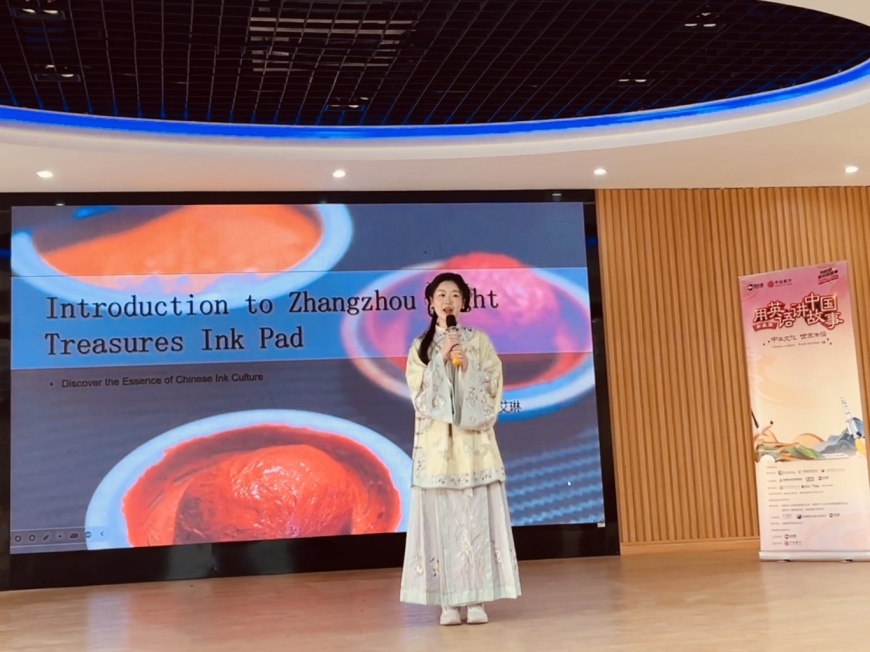 10位选手们精神抖擞,他们身着特色服饰或手持文化道具,以“中国元素”为主题,用流利的英语和饱满的情感绘声绘色地讲述了一个个精彩纷呈的中国故事。