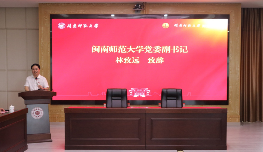 闽南师范大学党委副书记林致远在致辞中指出:项目合作通过整合大学与中学的教育资源,构建贯通式培养体系,为附中优秀学子搭建更广阔的成长平台。他还强调:要充分发挥专业优势,精心设计合作方案,选派骨干教师走进附属中学课堂,开设学科前沿讲座、创新思维课程,激发学生对不同学科的兴趣与探索欲望;积极组织附中学生参与科研项目、学科竞赛和社会实践活动,让附中学生在实践中提升创新能力,培养出一批又一批具有家国情怀、创新精神和实践能力的拔尖创新人才。