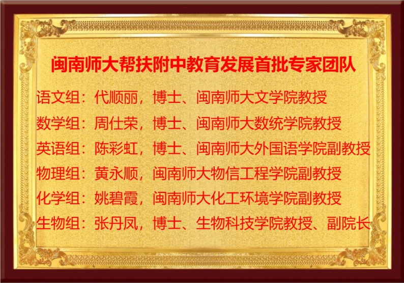 专家团队由闽南师大本校的教授、硕士生导师、博士,漳州市教育科学研究院教研员、福建师大附中、漳州市一流名校高中一线的正高级教师、特级教师、省市级名师组成。
