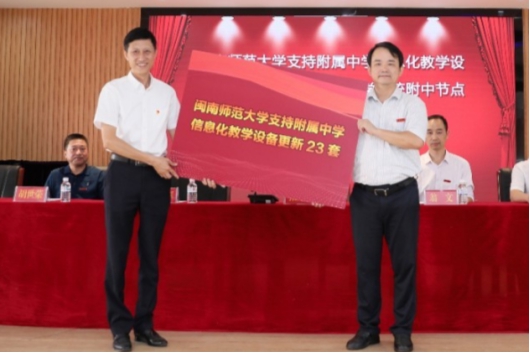 9月29日上午,闽南师范大学支持我校信息化教学设备更新暨教学专用高速网络、云教学系统附中节点开通启用仪式在我校音乐厅举行。