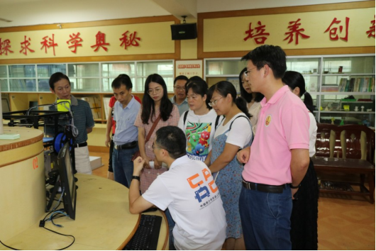 在云霄一中领导、老师的热情陪同下,我校党员教师们参观了该校师生书画作品展厅、机器人活动室等功能用室,聆听该校领导、老师关于推进特色办学、校园文化建设的经验、成果介绍。