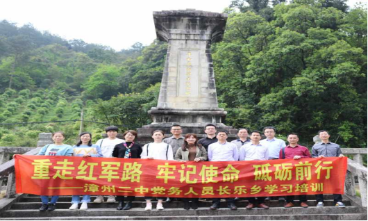 重走红军路,送教长乐行。日前,漳州二中党务人员、教师党员在学校党委书记、校长林群鸣和党办主任、校长助理赖文辉带领下,到平和县长乐乡开展“送教下乡长乐行”暨“重走红军路,牢记使命,砥砺前行”党务人员长乐乡学习培训。