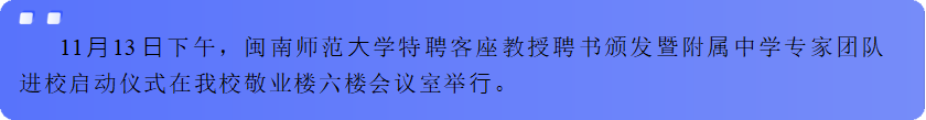 闽南师⼤附中党委书记、校⻓姚家辉简短汇报了学校近期办学发展硕果,感谢闽南师范⼤学各级领导和全体客座教授、特聘专家在过去⼀年⾥对附中的鼎⼒⽀持和帮助,期待专家们今年继续在教师教科研和学⽣培养⽅⾯特别是优⽣辅导⽅⾯给予指导。