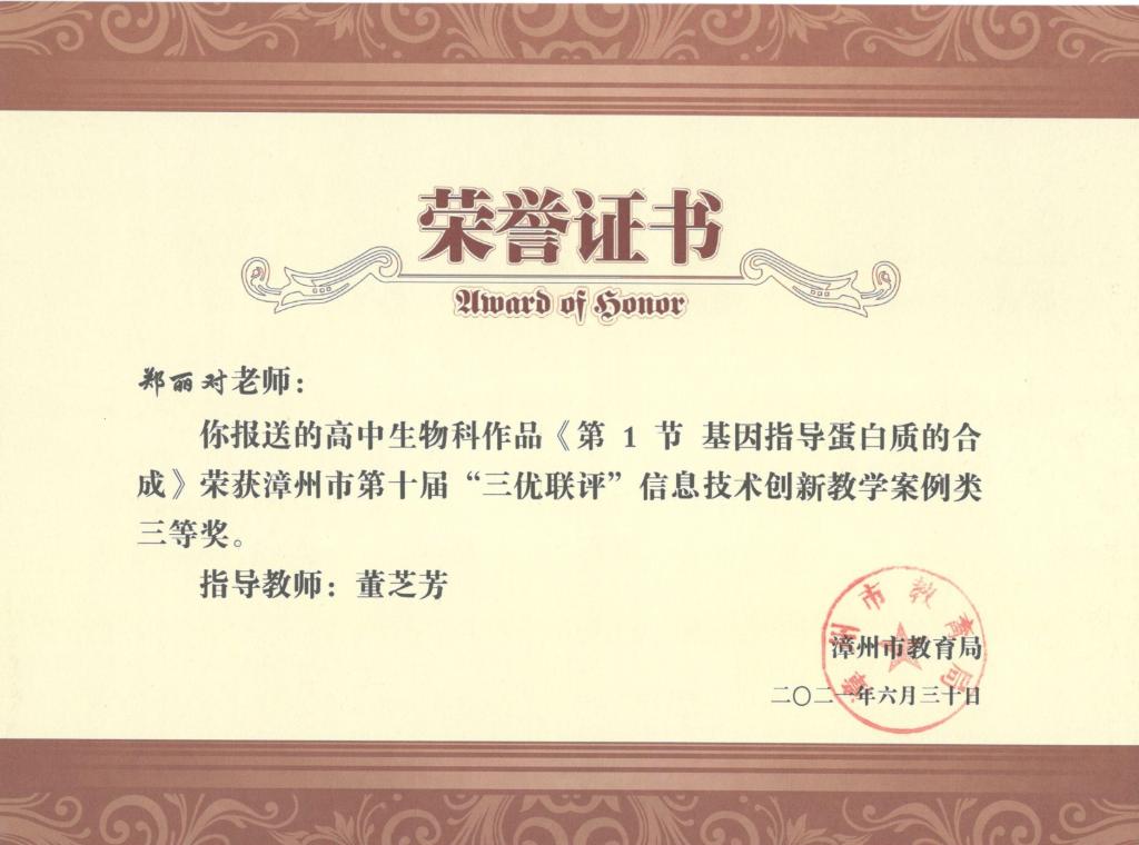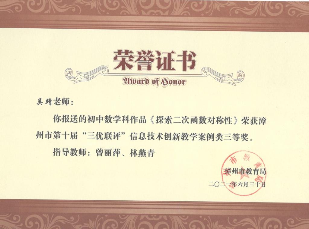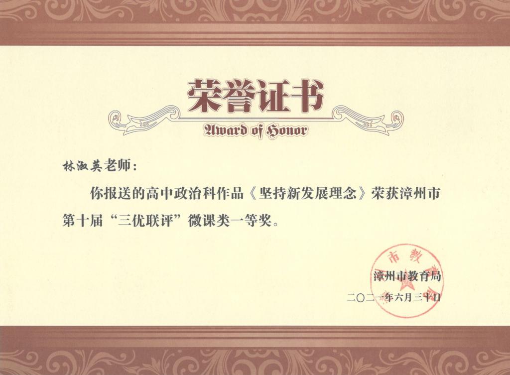 2021年漳州市第十届“三优联评”获奖情况