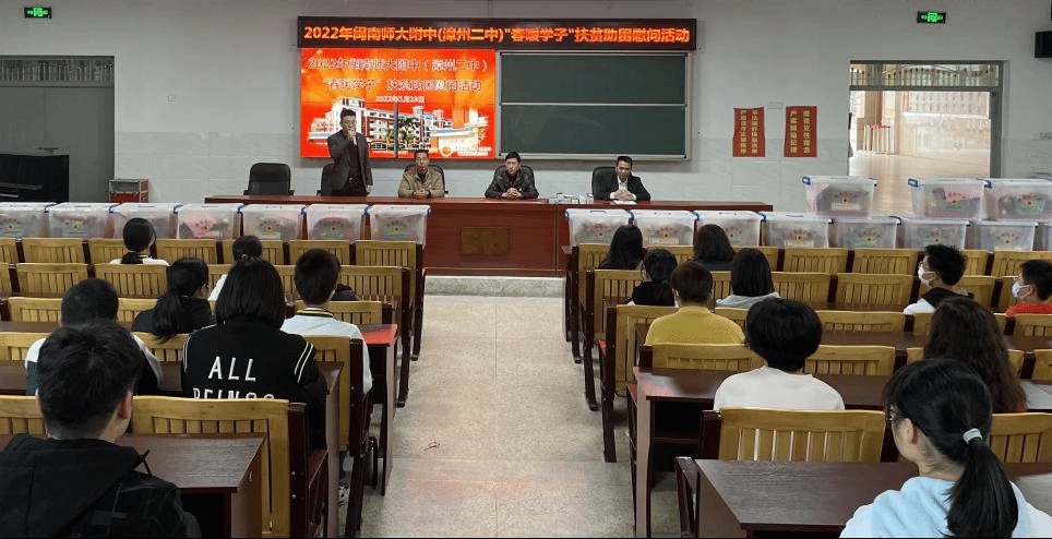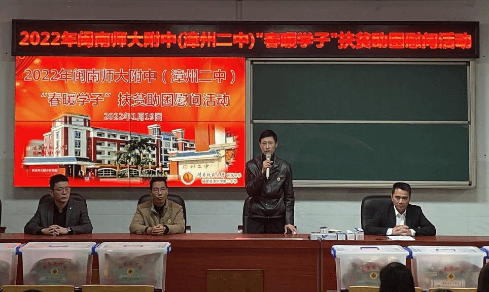 2022年1月19日下午,ylzz总站线路检测中心(漳州二中)"春暖学子"扶贫助困慰问活动在学术报告厅举行,学校党委书记、校长姚家辉,学校党委副书记罗文旺、校长助理戴舟斌、政治处主任姚荣华、副主任钟承兵及黄映红老师参加活动。活动由政治处主任姚荣华主持。