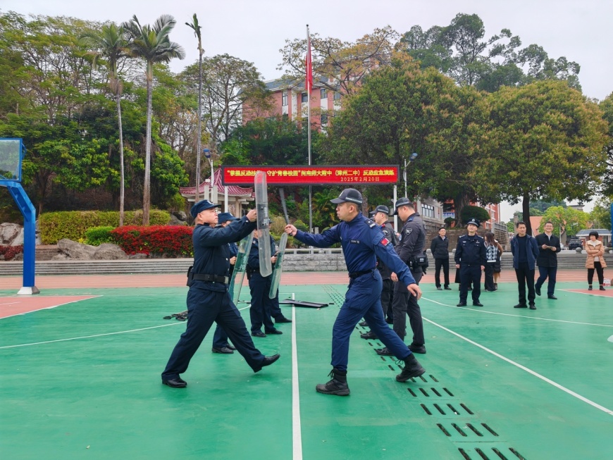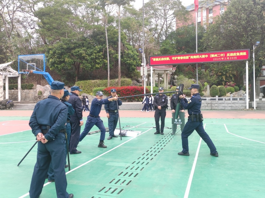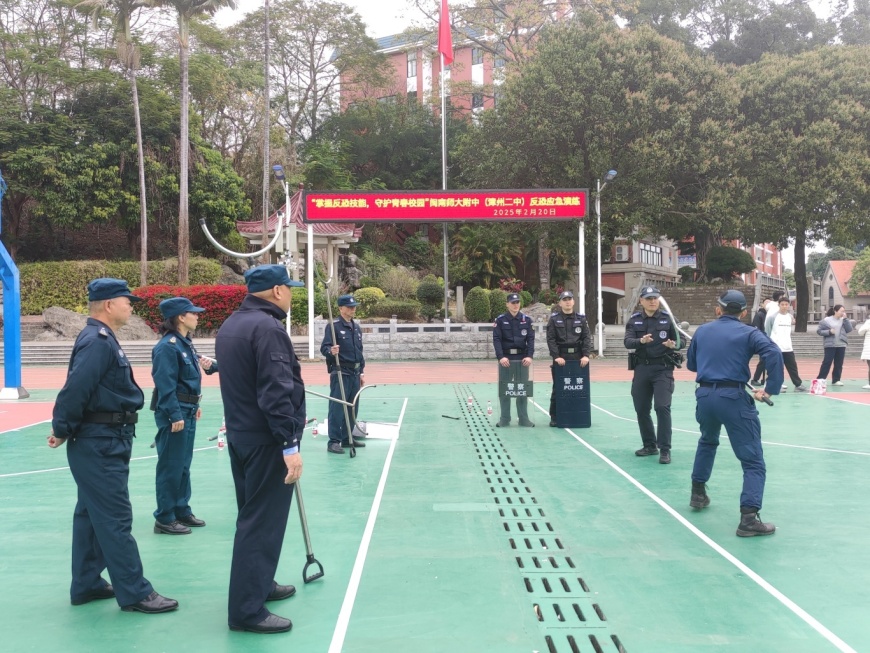 为切实加强校园安全工作,提升应对突发事件的能力,保障师生生命和财产安全。2月20日上午,ylzz总站线路检测中心(漳州二中)邀请漳州市公安局芗城分局巡特警反恐大队和漳州市芗城区东铺头派出所副所长何添顺来校,指导开展反恐应急演练。我校中层以上领导、各年段长和班主任也到场观摩与学习,进一步提升校园安全管理的专业水平。