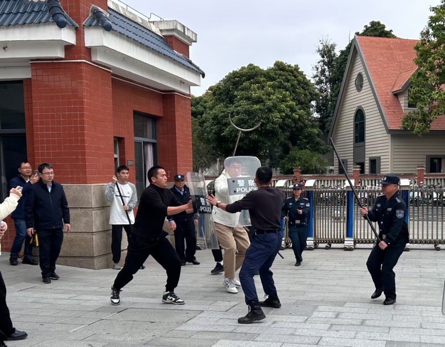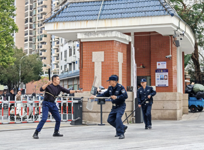 漳州市公安局芗城分局巡特警反恐大队队员通过理论讲解和现场演示等多种方式,传授了反恐防暴知识与应急处置技巧,包括如何识别可疑人员、遭遇暴恐事件时的应对策略,以及盾牌、钢叉、钢钩等防暴器材的正确使用方法等。