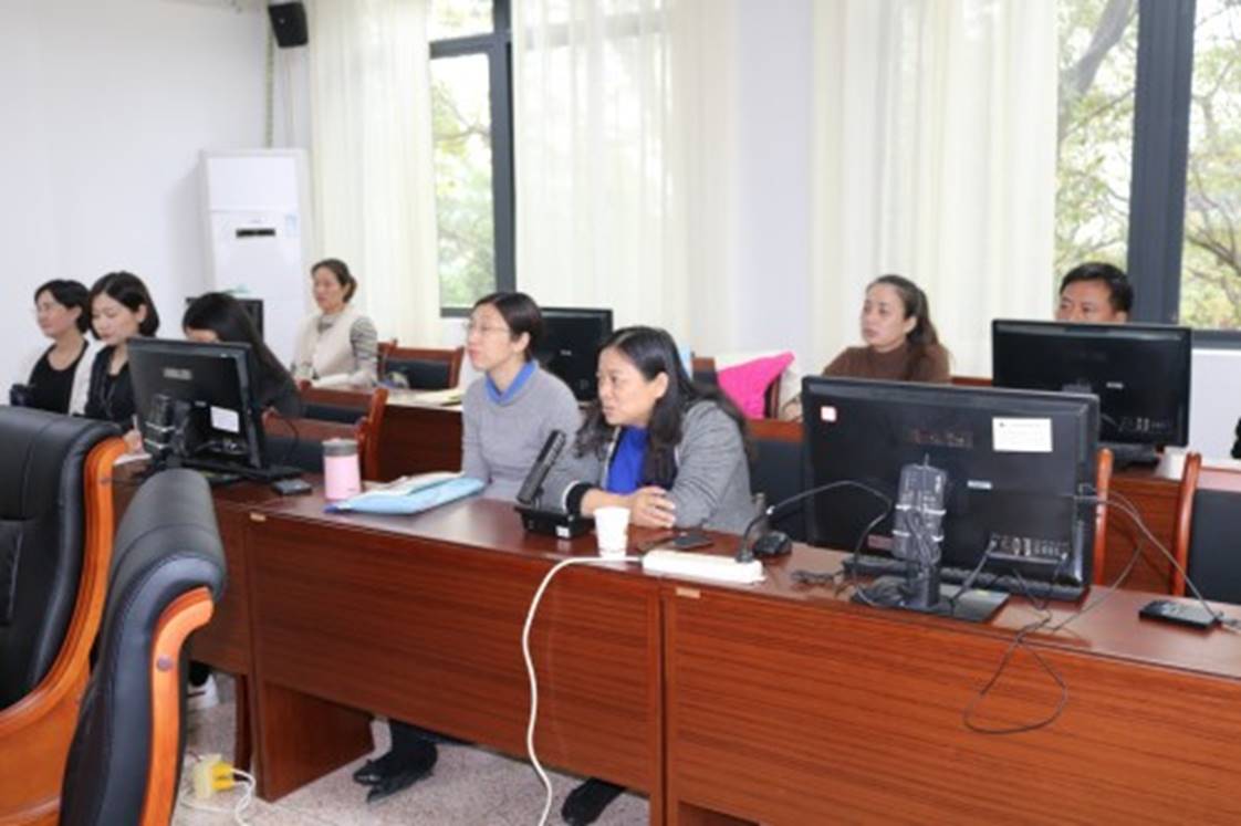 余副校长以“基于智慧课堂的‘四不三问’靶向教学探究与实践”为主题,向专家组和我校教师,作了学校义务教育教改项目中期绩效专题汇报,从七个方面介绍了学校学科教学改革项目近两年来的培育情况和阶段性成果。