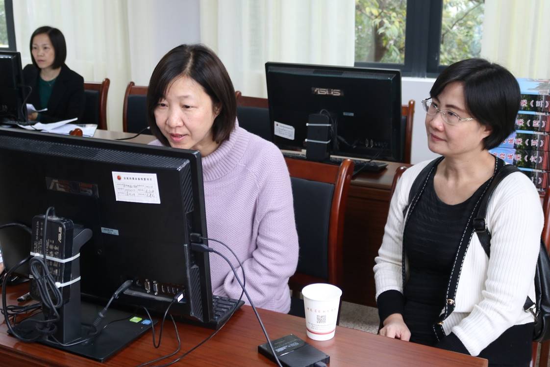 专家们查阅评估资料,认真细致地为我校义务教育教改工作“把脉”。