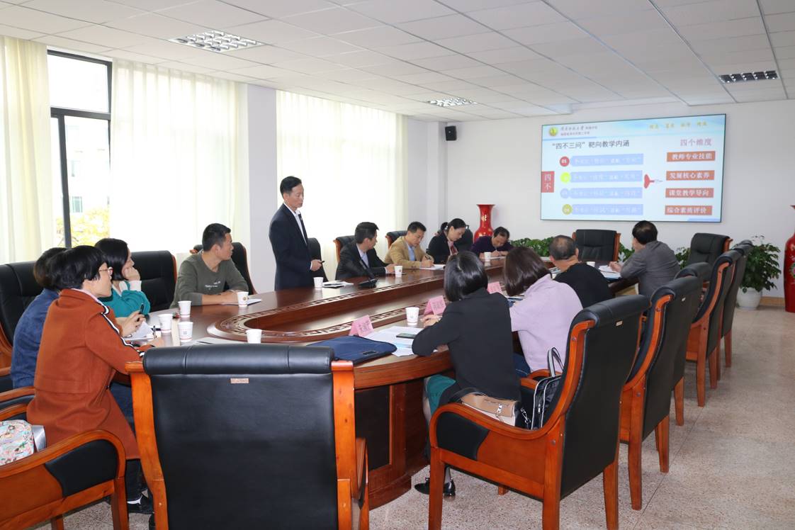 专家们和我校教师亲切交流,听取各教研组义务教育教改情况汇报。