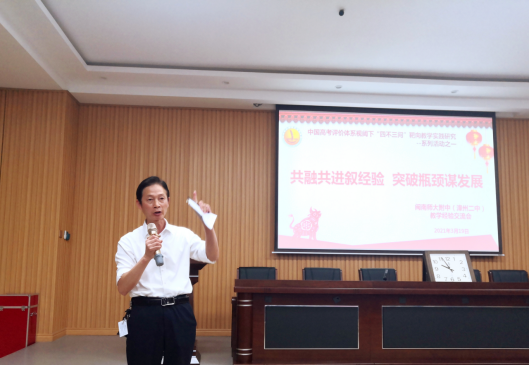 3月19日晚,ylzz总站线路检测中心(漳州二中)举行中国高考评价体系视阈下“四不三问”靶向教学实践研究系列活动之“共融共进叙经验,突破瓶颈谋发展”全校教学经验交流会。