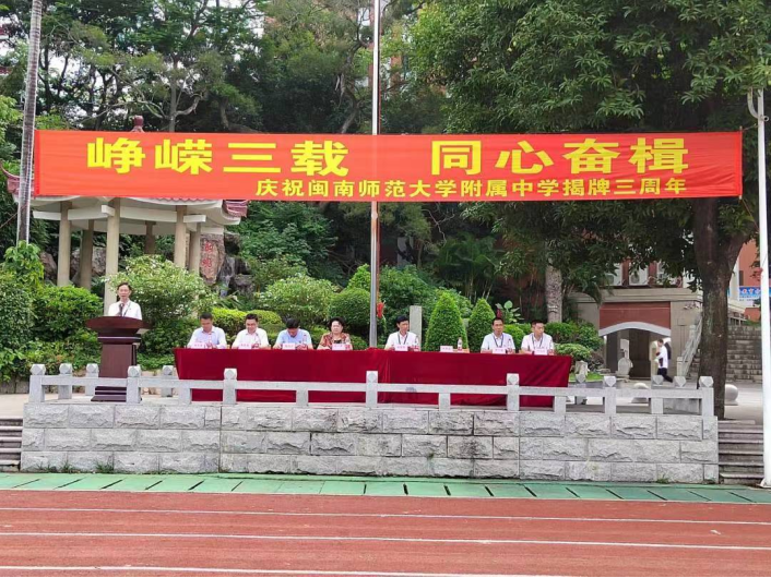 2022年5月23日,闽南师范大学附属中学举办揭牌三周年庆祝活动。闽南师范大学党委常委、副校长蒋一婷,社会合作处处长陈志宏、副处长朱志成、附属学校管理科科长田克湟等领导共同出席揭牌三周年庆祝活动。