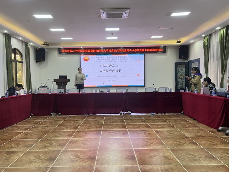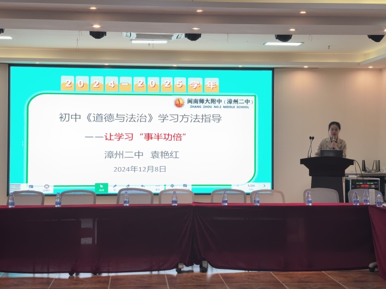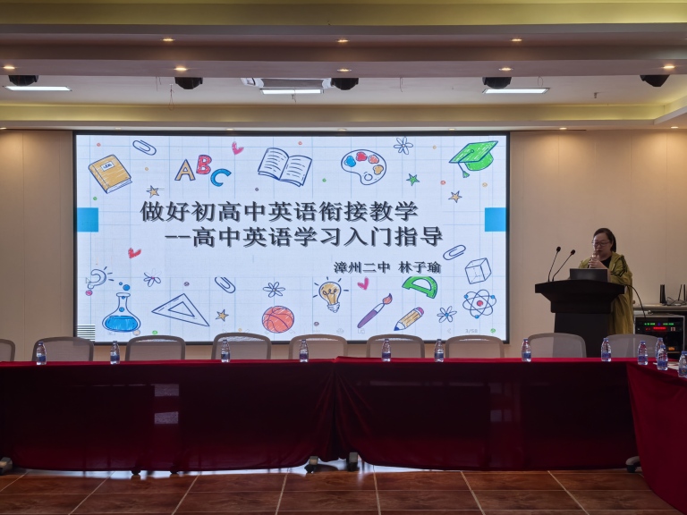 在我校初中英语教研组长陈春虾老师的组织下,英语会场以学科学法指导为切入点,从初高中英语衔接、数智技术在英语中的运用、写作能力提升等方面分享,力求探索一条英语学法的特色之路。