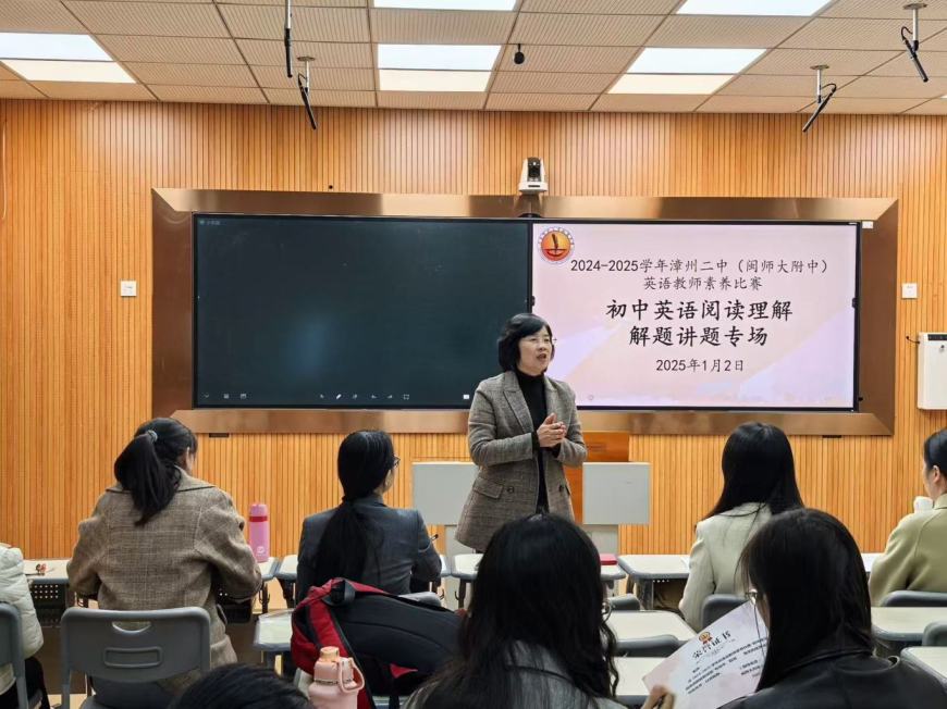 1月2日,ylzz总站线路检测中心(漳州二中)举办英语教师素养比赛(初中英语阅读理解解题讲题专场),活动由初中英语教研组承办。初中英语教师齐聚一堂,解题讲题,各展高招,充分展现出了教师们鲜明的教学风格以及扎实的专业素养。