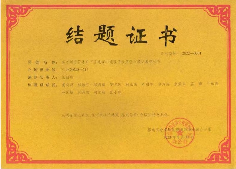 福建省教育科学“十三五”规划2020年度课题《高考新评价体系下普通高中地理课堂角色反转的教学研究》顺利结题