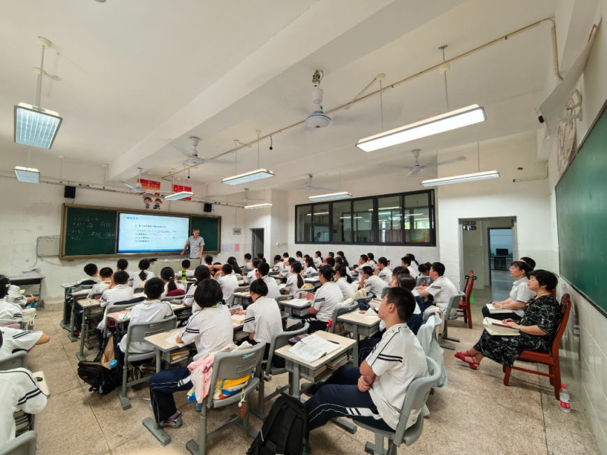 漳州市初中数学学科兼职教研员李玉华老师细心听取了新教师陈张煌老师和韩世峰老师的数学课。课后与数学组教师就新教材的解读与实施、中考备考策略等话题展开了深入的交流研讨。