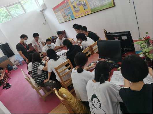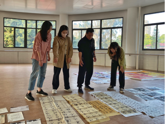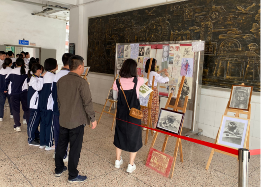 学校团委会老师和美术组老师们一同评选作品、布展