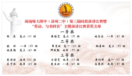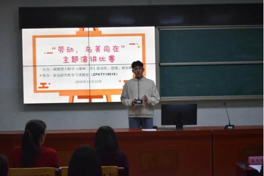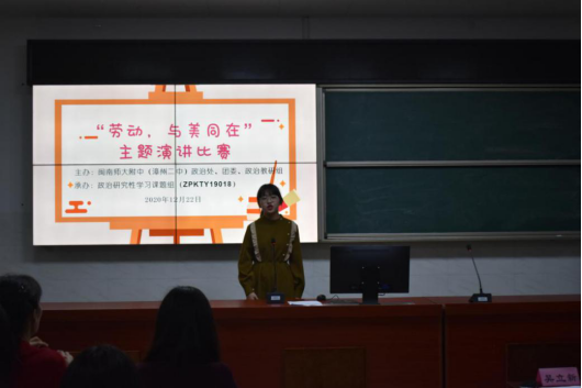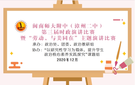 近日,我校举办第三届时政演讲比赛暨“劳动,与美同在”主题演讲比赛。活动由政治处、团委、政治教研组承办,由“以研究型学习为载体,提升学生政治核心素养实践研究”课题组协办。