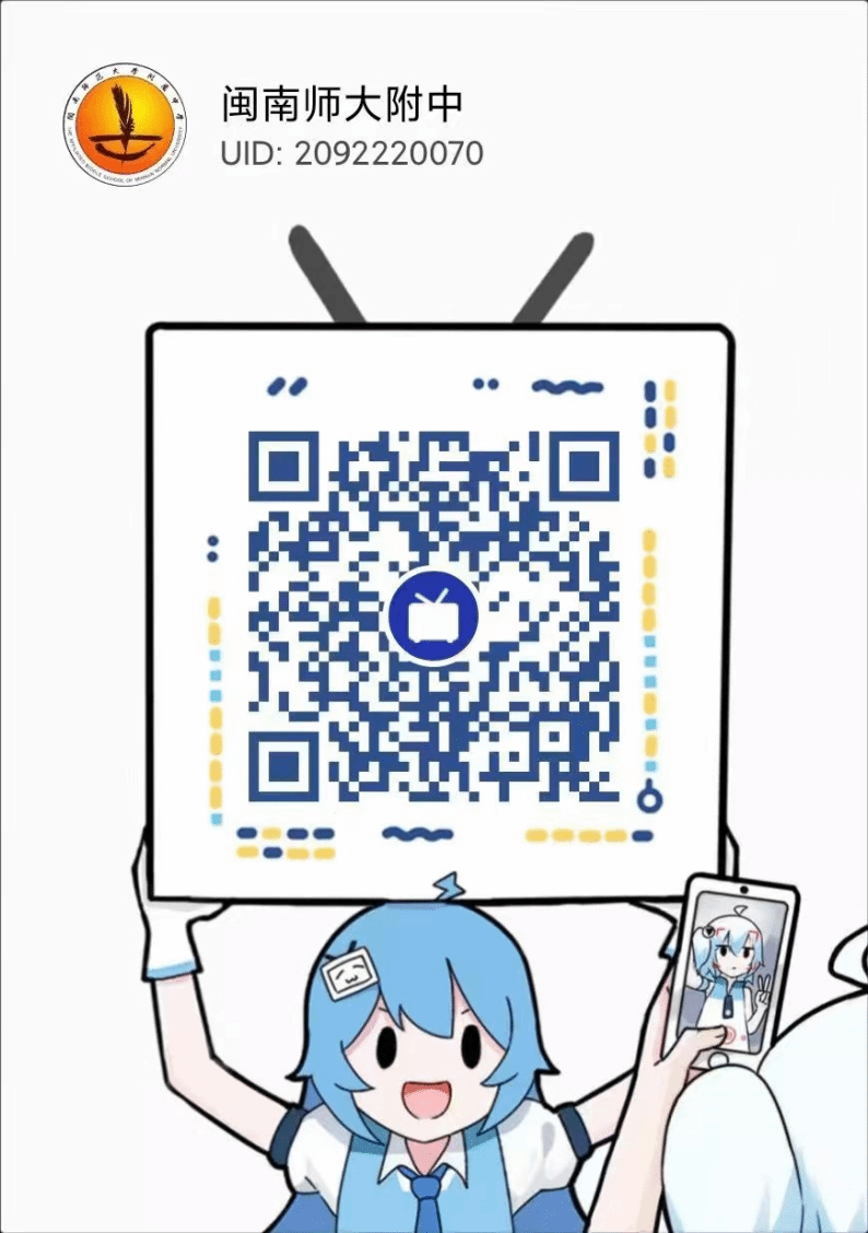 扫描二维码更多精彩视频,欢迎保存图片,打开bilibili,扫码关注学校短视频号!