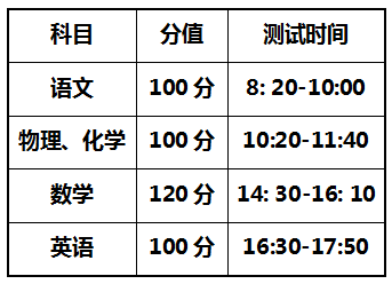 (四)综合素质测试内容及分值计算:测试内容以初中课程内容为主,适当增加学科拓展性内容,主要考查学生综合运用所学知识分析问题和解决问题的能力以及创新精神和实践能力。总分420分。