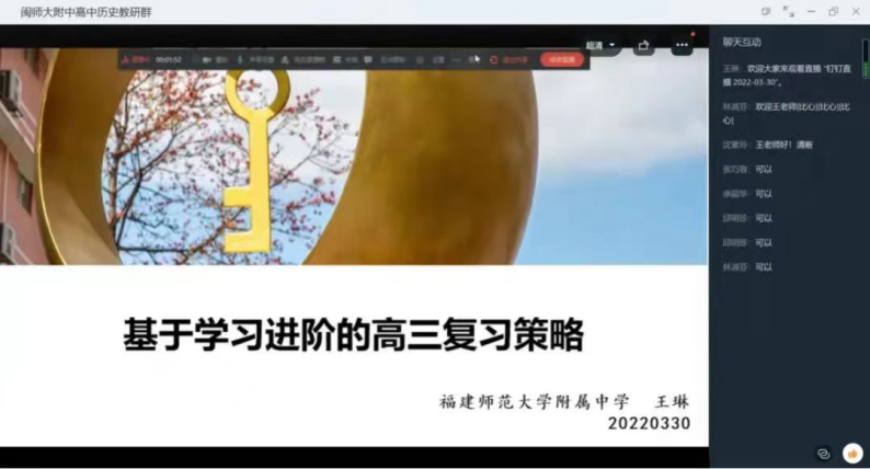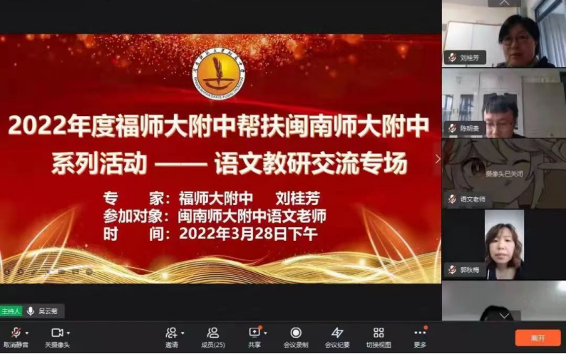 福师大附中专家与我校各教研组云端相会、深入教研