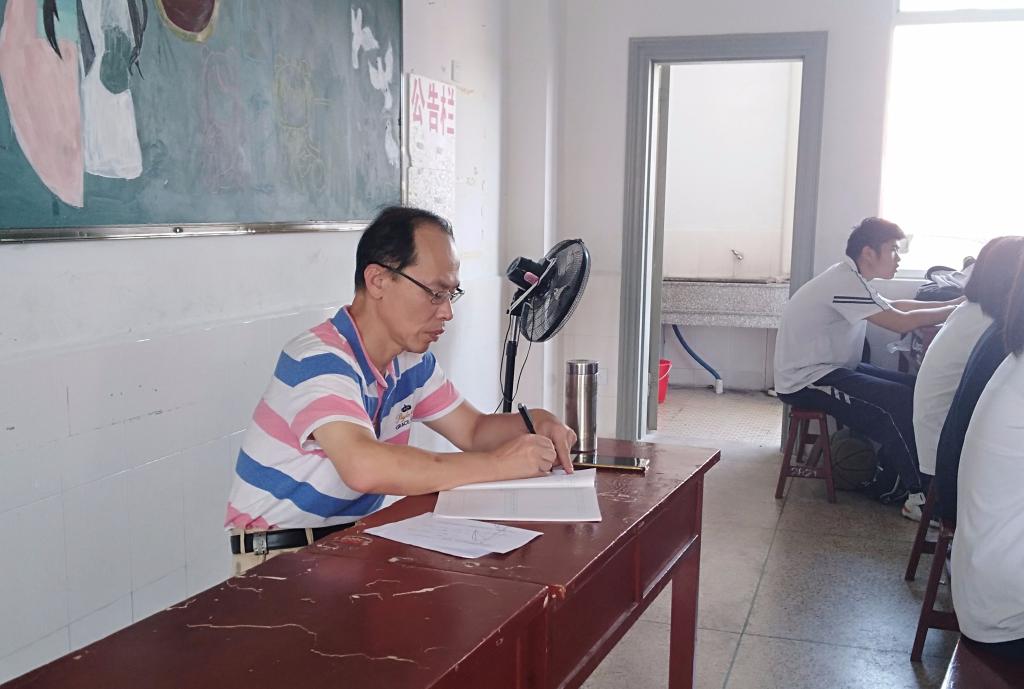 图为数学教研员林志诚老师深入初三年听课