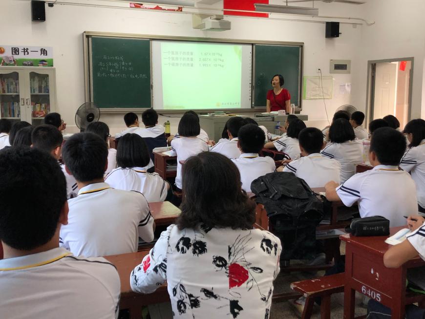 图为化学教研员张明月老师深入初三年听课