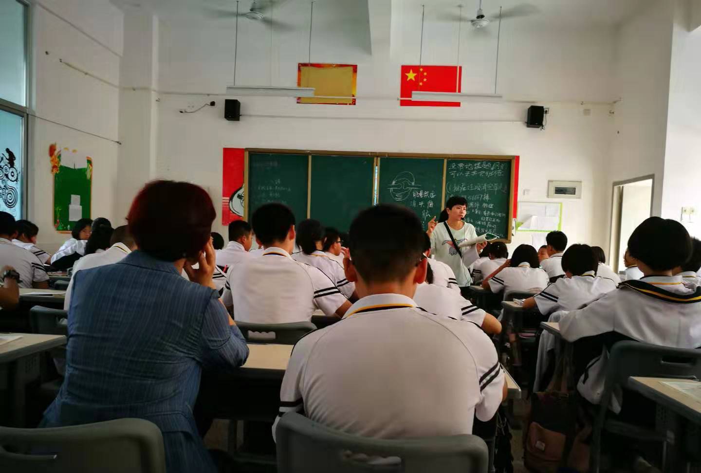 图为地理教研员刘文英老师深入初二年听课