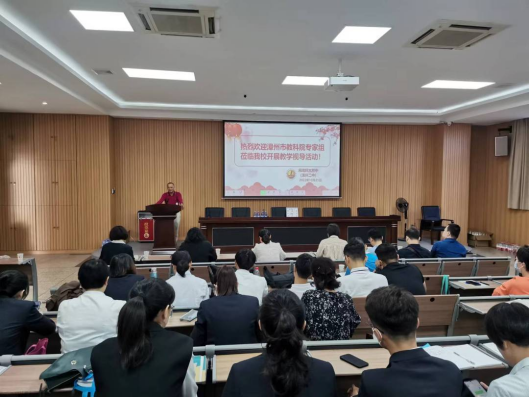 教学视导见面会在红专楼学术报告厅举行。副校长余荣宗、教研室主任苏玉红、教研室副主任林燕青、各教研组组长、初中各年段段长出席见面会。