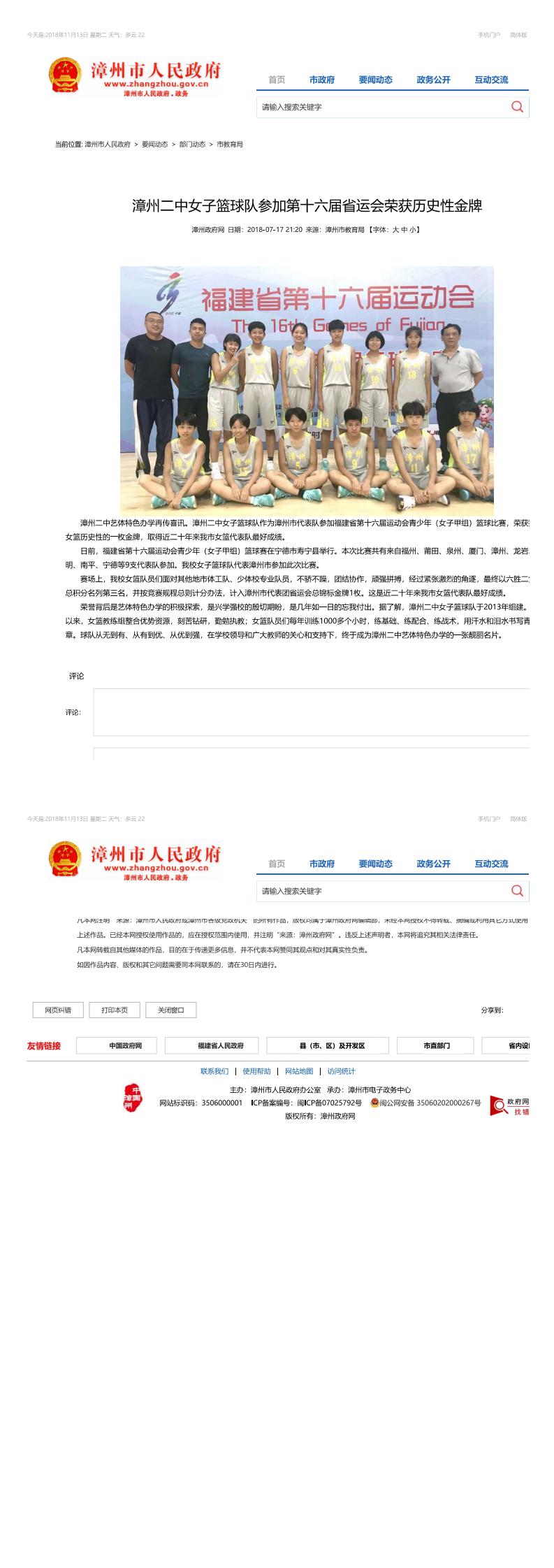漳州市政府网站2018年07月17日报道